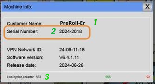 3. Live Cycle Counter: The number of cycles your machine has completed (how many pre-rolls have been done since purchase).